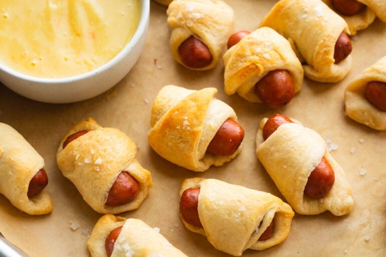 There are a lot of fancy Super Bowl snacks out there, but pigs in a blanket will always be the first thing gone. Every. Single. Time. These are made with juicy Lil Smokies wrapped in buttery crescent rolls and baked until golden, then served with a simple homemade dipping sauce that takes them completely over the top.
