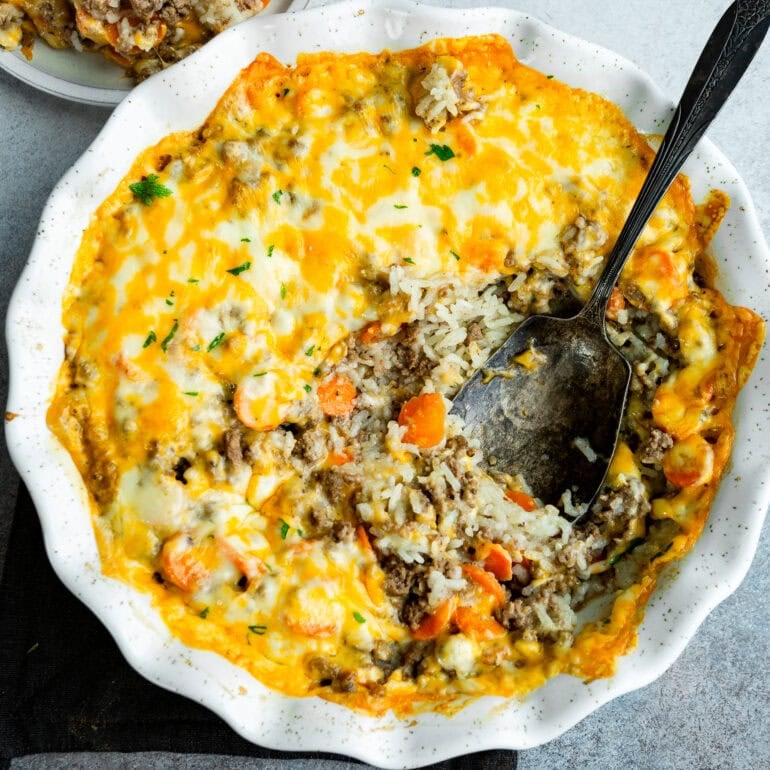 One-Dish Cheesy Beef & Rice Bake