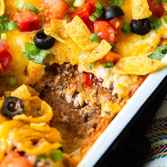 All your taco favorites layered in a casserole! Easy, cheesy, and ready in a flash—taco night made even better.