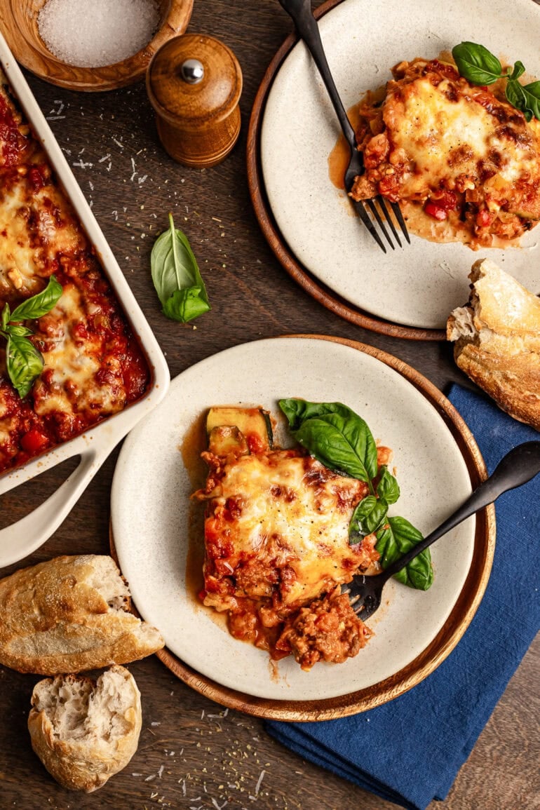 You can freeze zucchini lasagna for up to 3 months. Wrap it tightly in foil and place it in a freezer-safe container or bag. Thaw overnight in the fridge before reheating as above.