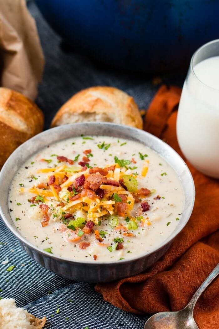 A Dutch oven or heavy-bottomed pot works best for cauliflower chowder. Cooking the bacon first builds flavor, and those browned bits left behind add depth to the soup. Don’t wipe them out! They’re liquid gold for flavor.