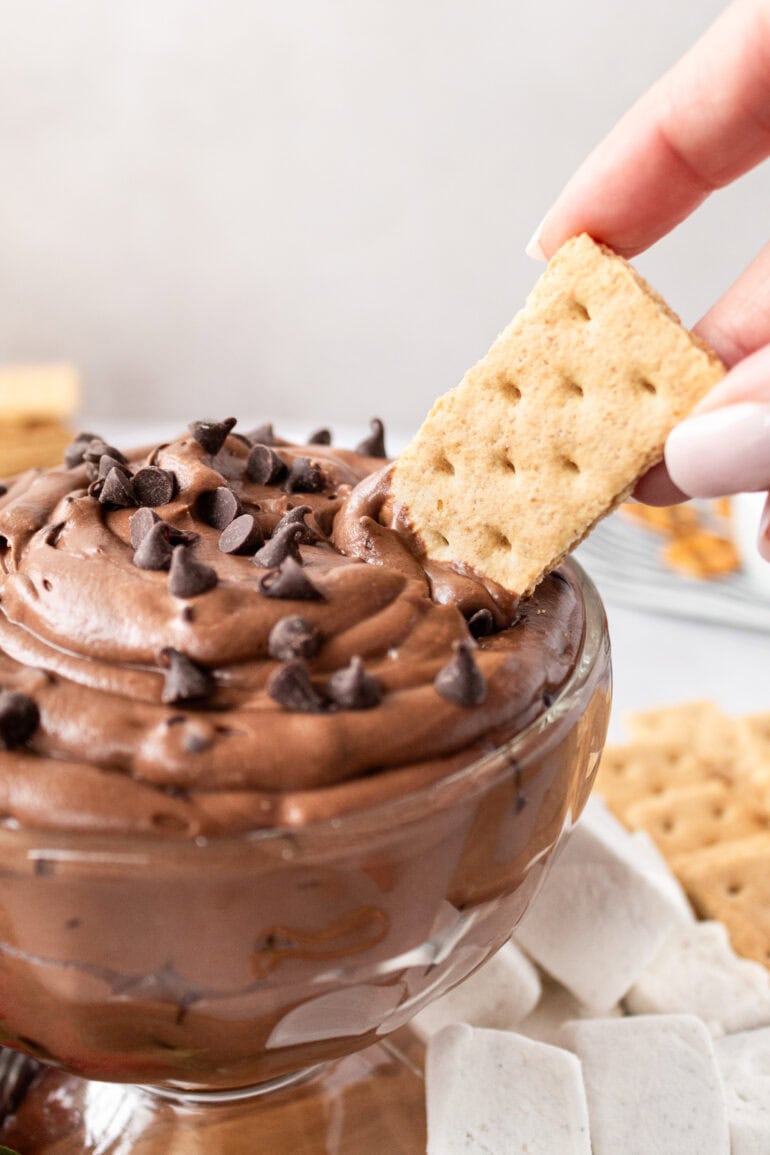 One of the things I love most about this easy chocolate dessert is that it pairs well with just about anything, making it perfect for serving with a variety of dippers. Some of our favorites include pretzels or pretzel chips, cinnamon sugar pita chips, fresh fruit like strawberries, banana, and apple slices, cookies (store-bought or homemade), vanilla wafers, marshmallows, and classic graham crackers.