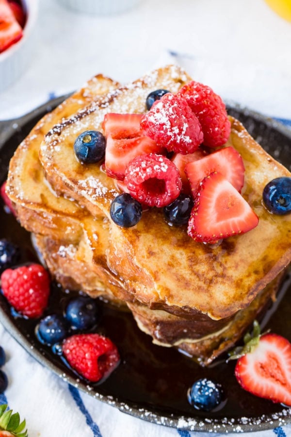 There are so many ways to dress up a stack of simple french toast. Homemade syrups, diced fruit, powdered sugar, you name it! Here are some of our favorite french toast toppings besides plain maple syrup and butter:
