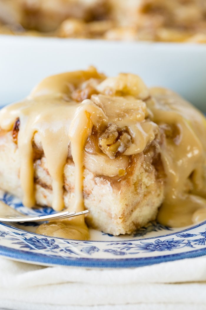 Besides the addition of these glazed apples, this is a fairly traditional bread pudding recipe that I think you and your family will love!